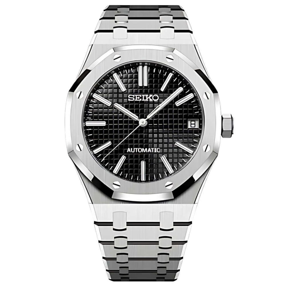 Inspirée du design emblématique de l’Audemars Piguet Royal Oak, cette Seiko modifiée allie élégance moderne et sophistication horlogère.